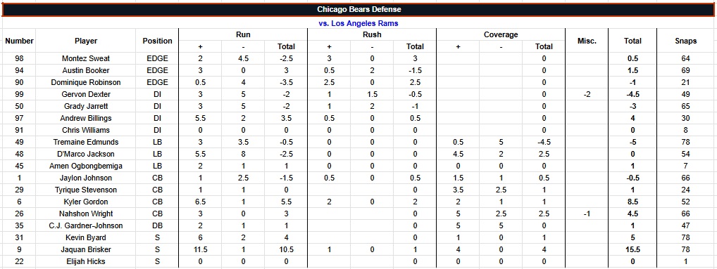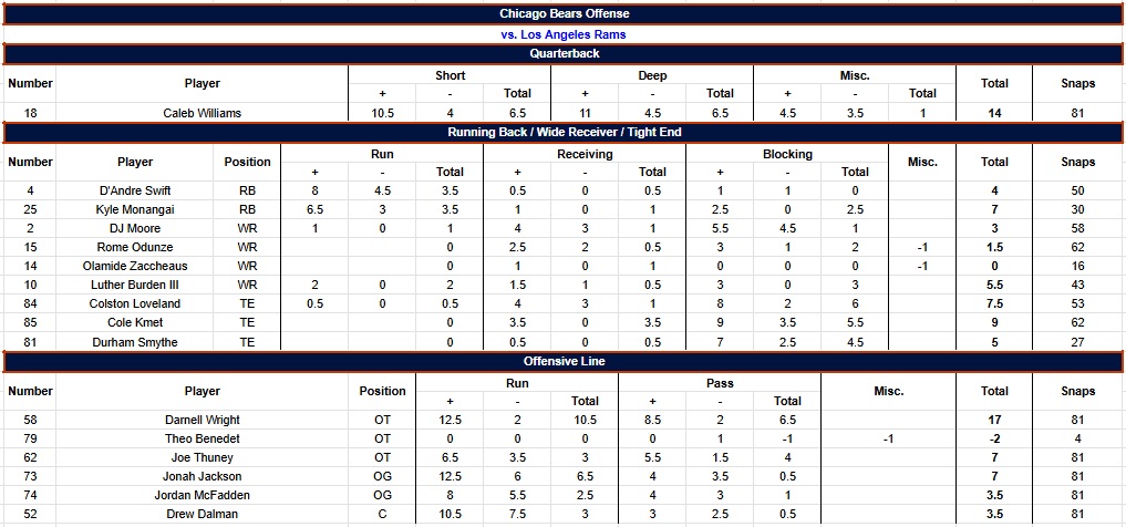 Jonah Jackson stayed healthy, Joe Thuney was his typical excellent self and was given the hardware to prove it. The Bears even got a nice bonus, as Jordan McFadden looked okay against the Rams.